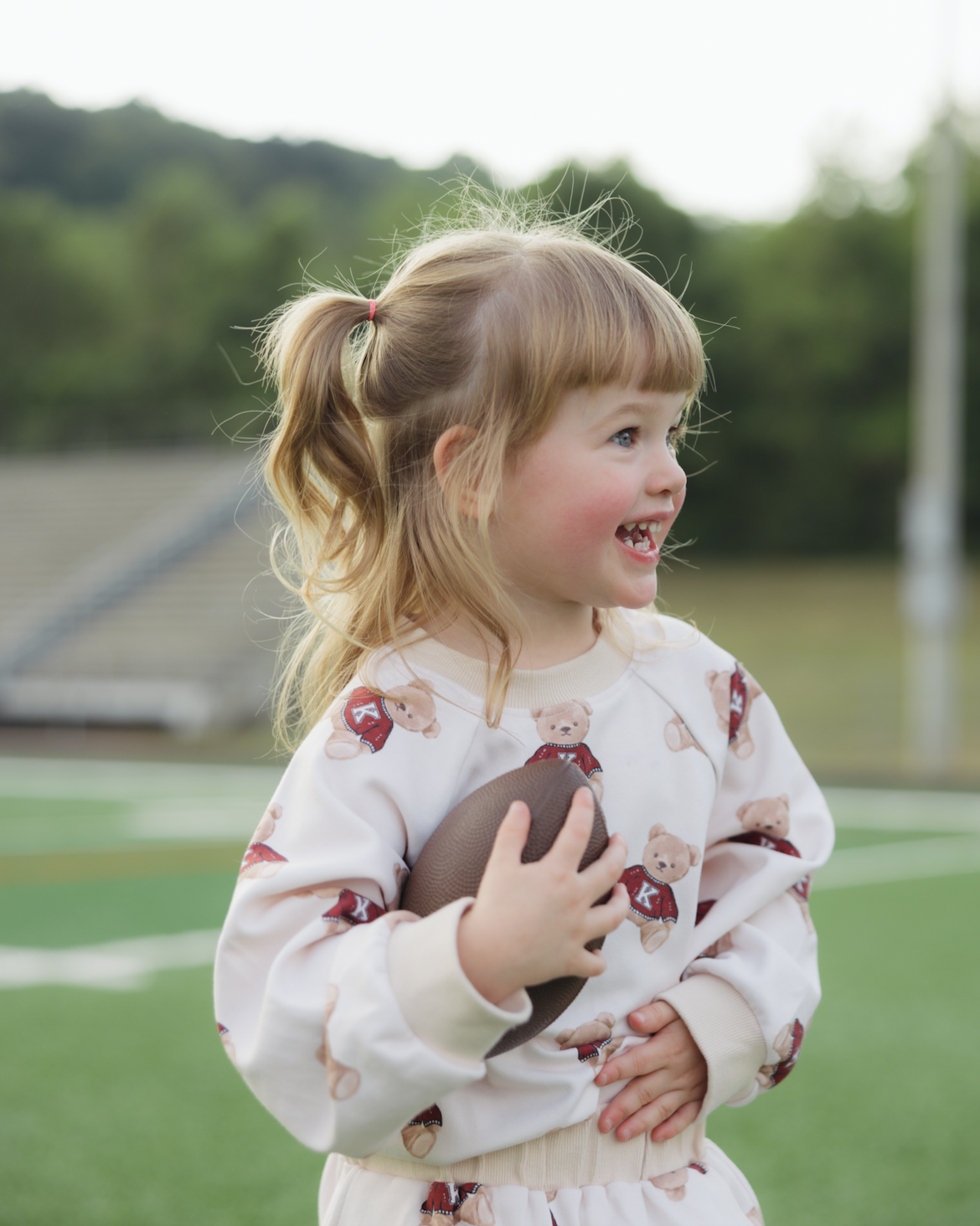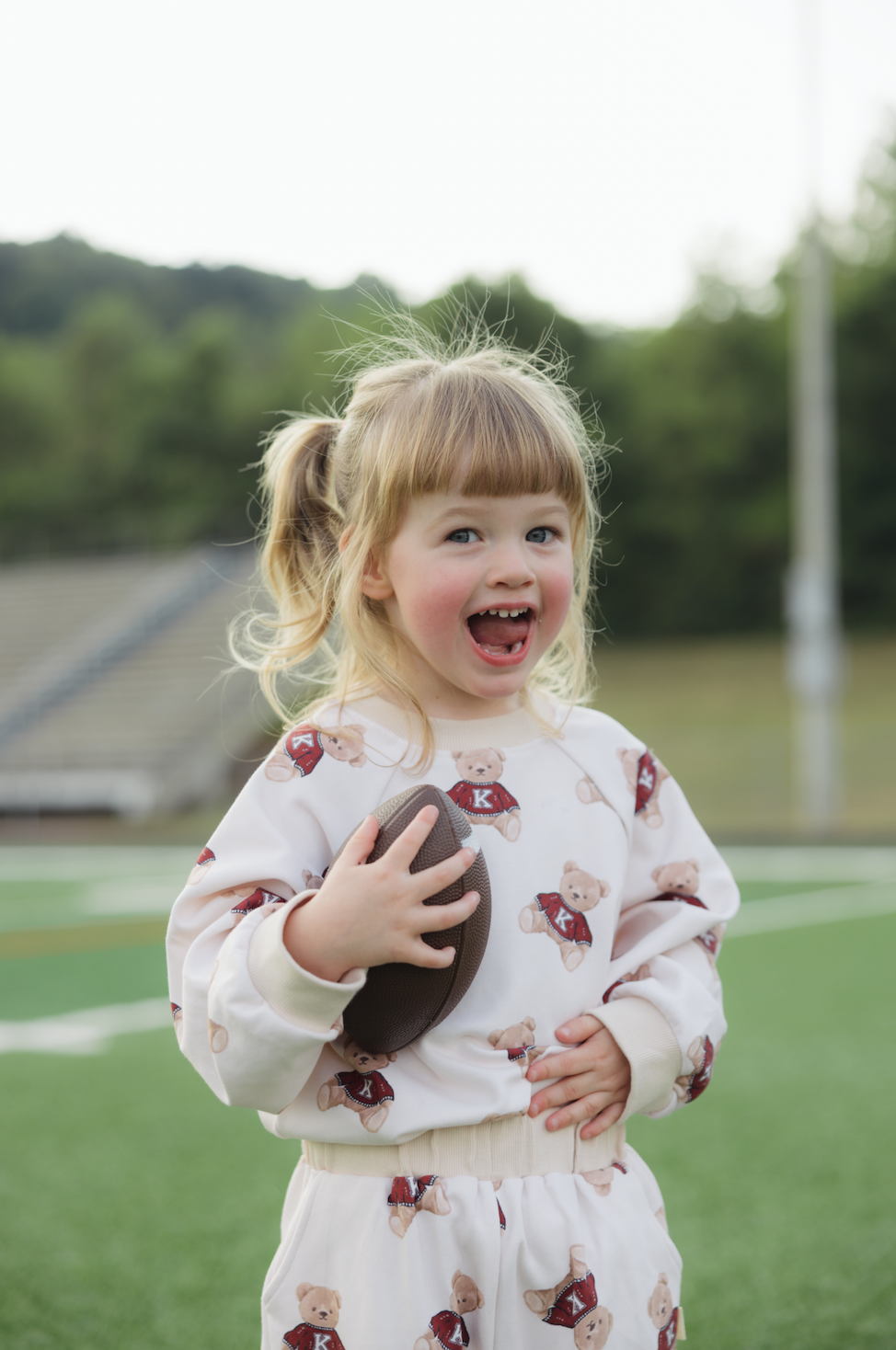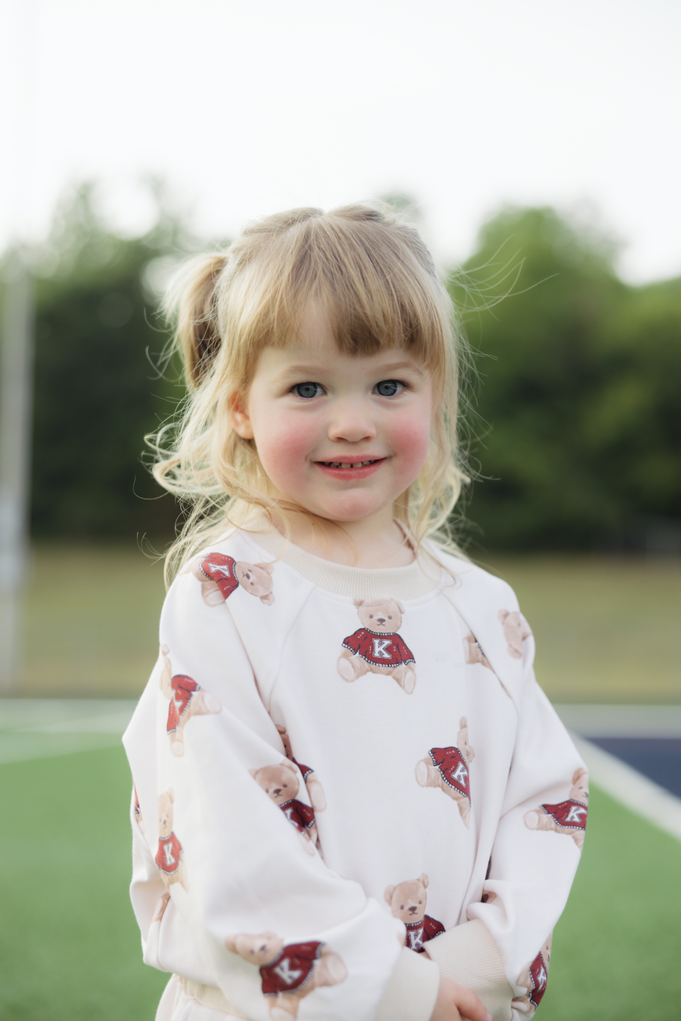 Sizing: Olivia is 2 and a half wearing a size 2/3T. Sizing is meant to be oversized and relaxed fit.